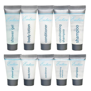 RapidClean Entice Guest Amenities contain high quality ingredients and a pleasant fragrance. The pure and fresh design of the Entice range co-ordinates with the decor of any hotel. This comprehensive range includes hair conditioner, hair shampoo, hair conditioning shampoo, shower gel and body lotion in both 15ml and 30ml tubes which match body soap bars in pleat wrap available in 20g.