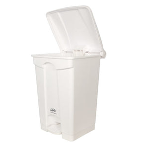 White Pedal Bin is a high-quality, durable plastic bin equipped with a foot pedal for hands-free lid operation